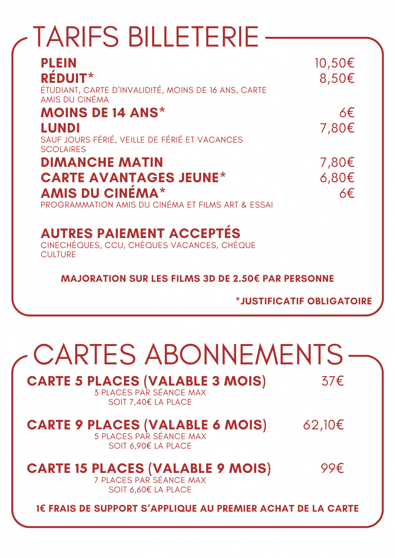 Les tarifs du cinéma